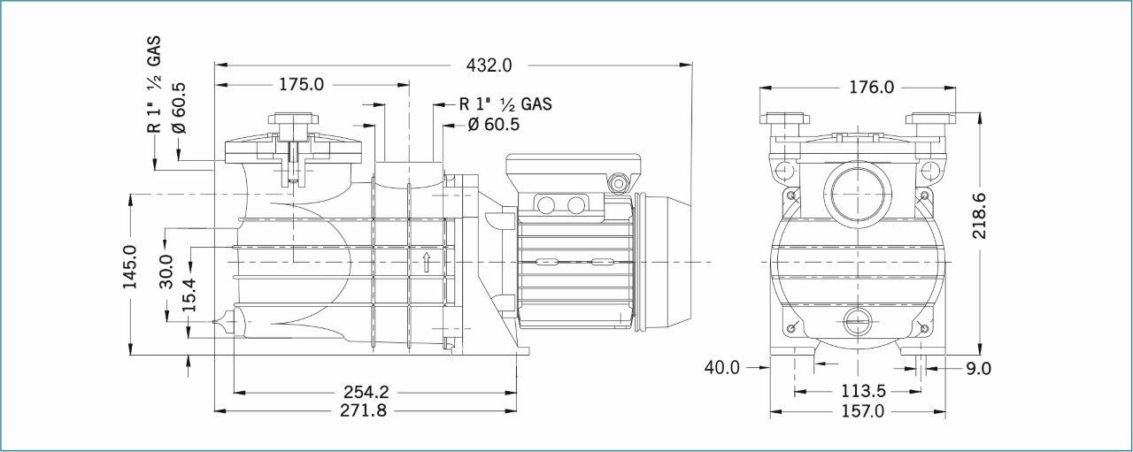 Filtrační čerpadlo; Krytí motoru: IP55; Výkon: 0,20 kW; Otáčky: 2800 ot./min; Průtok: 4 m3/h; Napětí: 230 V; Napojení sání / výtlak - závit: 1,5 "in; Pro mořskou vodu: Ano
