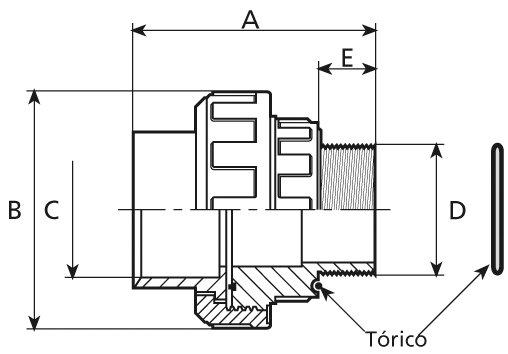 PVC tvarovka - Šroubení 50 x 1 1/2“ ext., s o-kroužkem