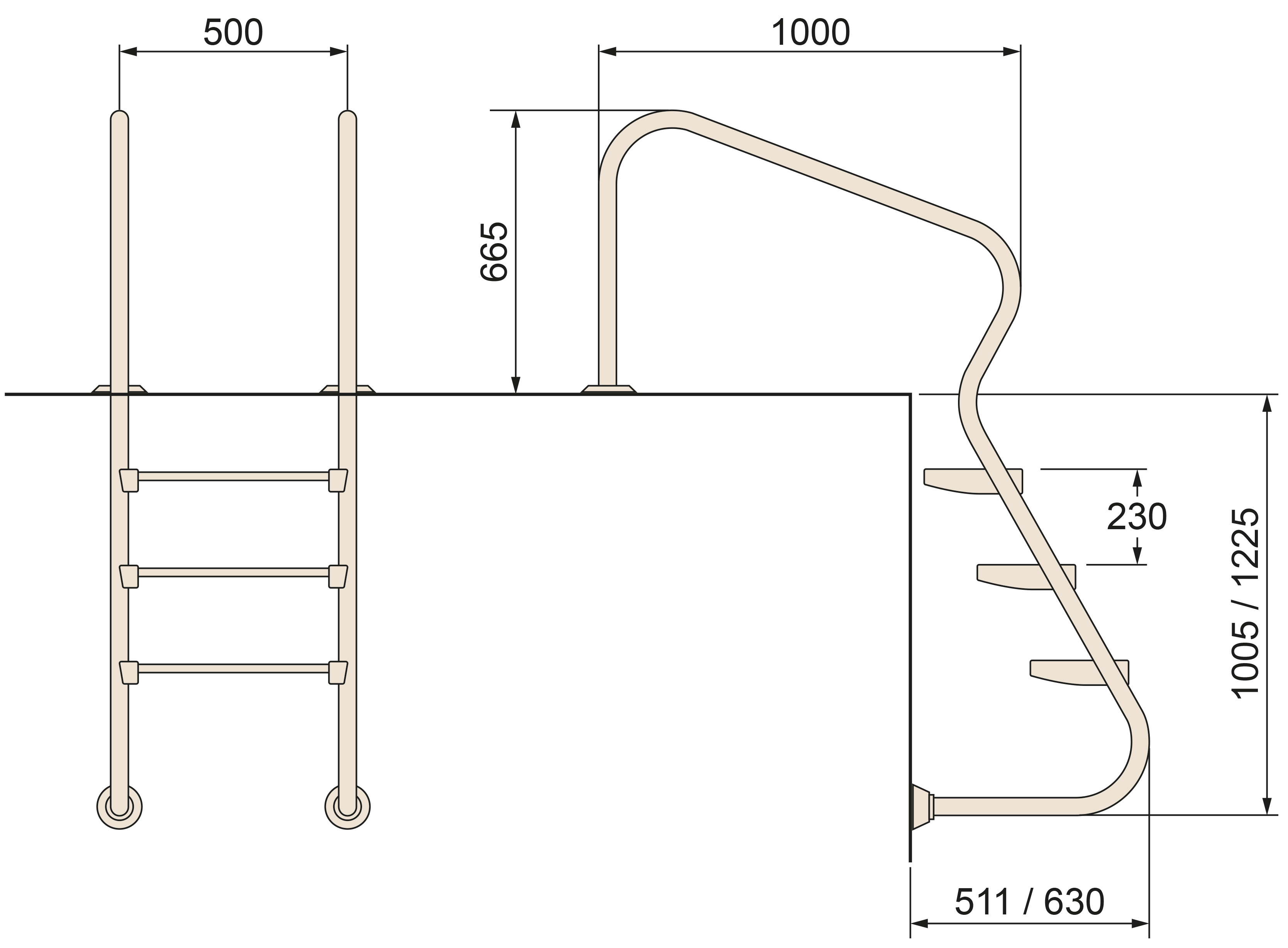 Žebřík nerez Ergo s pouzdrem 3 stupňový, AISI 316